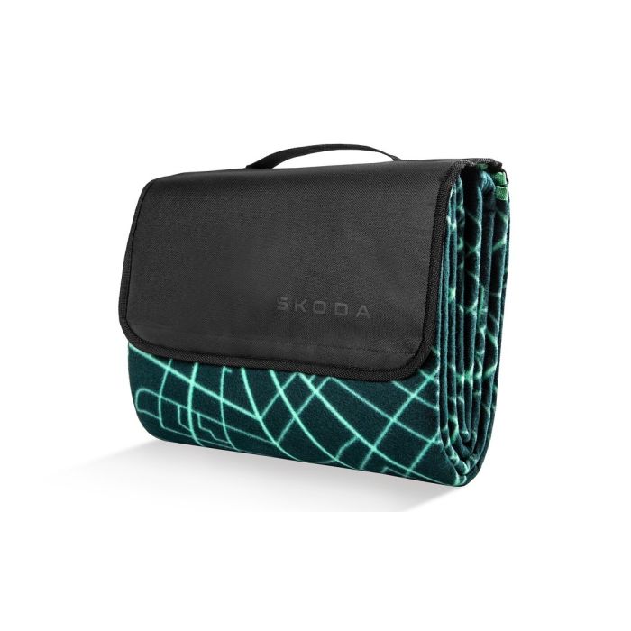 Ciesz się spokojnymi chwilami na łonie natury dzięki praktycznemu kocowi piknikowemu z miękkiego i przyjemnego polaru w nowym designie Škoda.